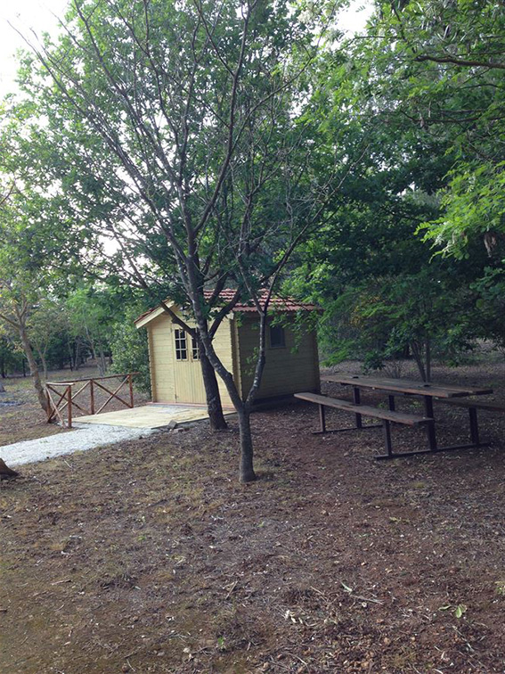camper all’ombra dei pini e ulivi, con possibilità di allaccio all’energia elettrica, acqua, scarico reflui nonché spazi per campeggio a 10 tende.