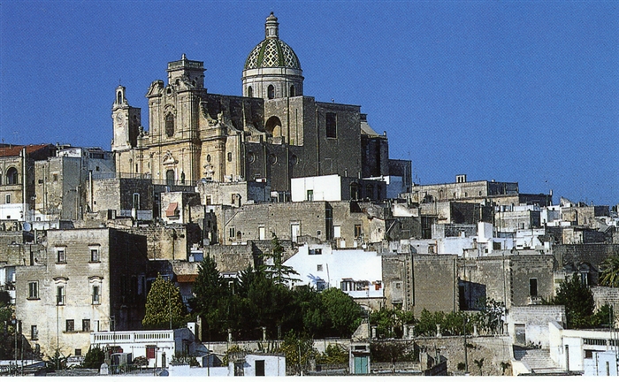 Il Palazzo vescovile, uno fra più antichi vescovadi (700-800 d.c. ). La Curia, di impianto seicentesco,conserva la biblioteca vescovile rinomata in tutta la Puglia.