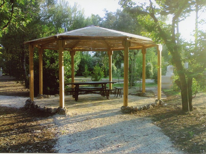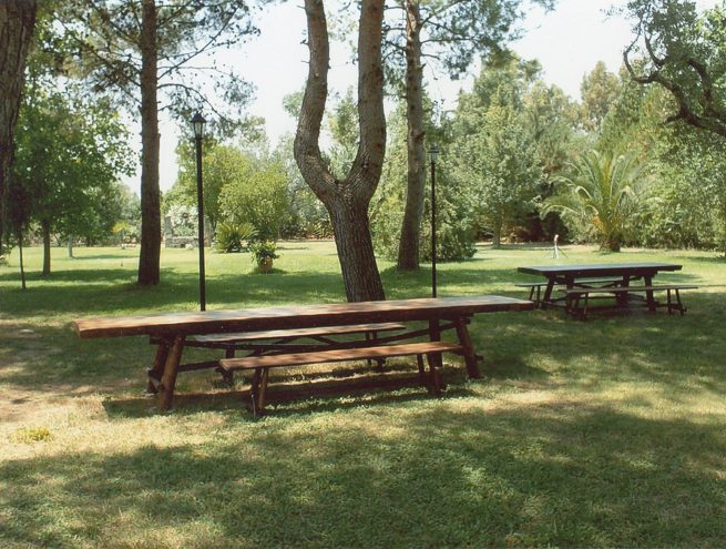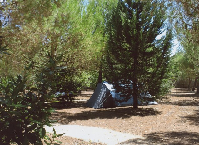 camper all’ombra dei pini e ulivi, con possibilità di allaccio all’energia elettrica, acqua, scarico reflui nonché spazi per campeggio a 10 tende.